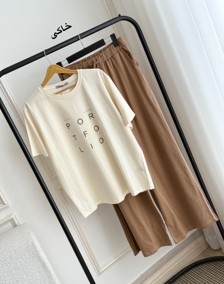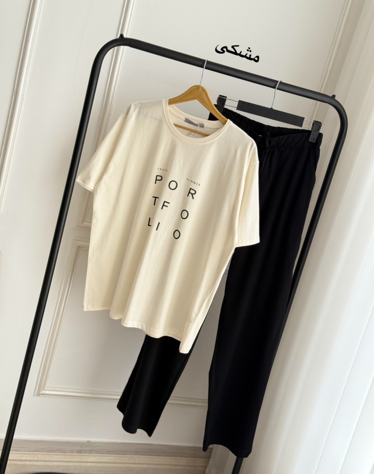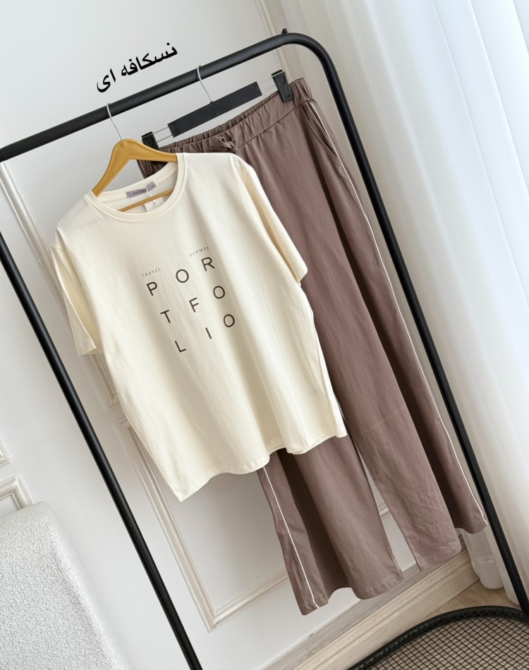 Mدور سینه 110 قد آستین23 قد تیشرت 67 دور کمر با کشسانی 90 دور کمر در حالت عادی 68 دور ران 64 دور باسن 108 قدشلوار 105