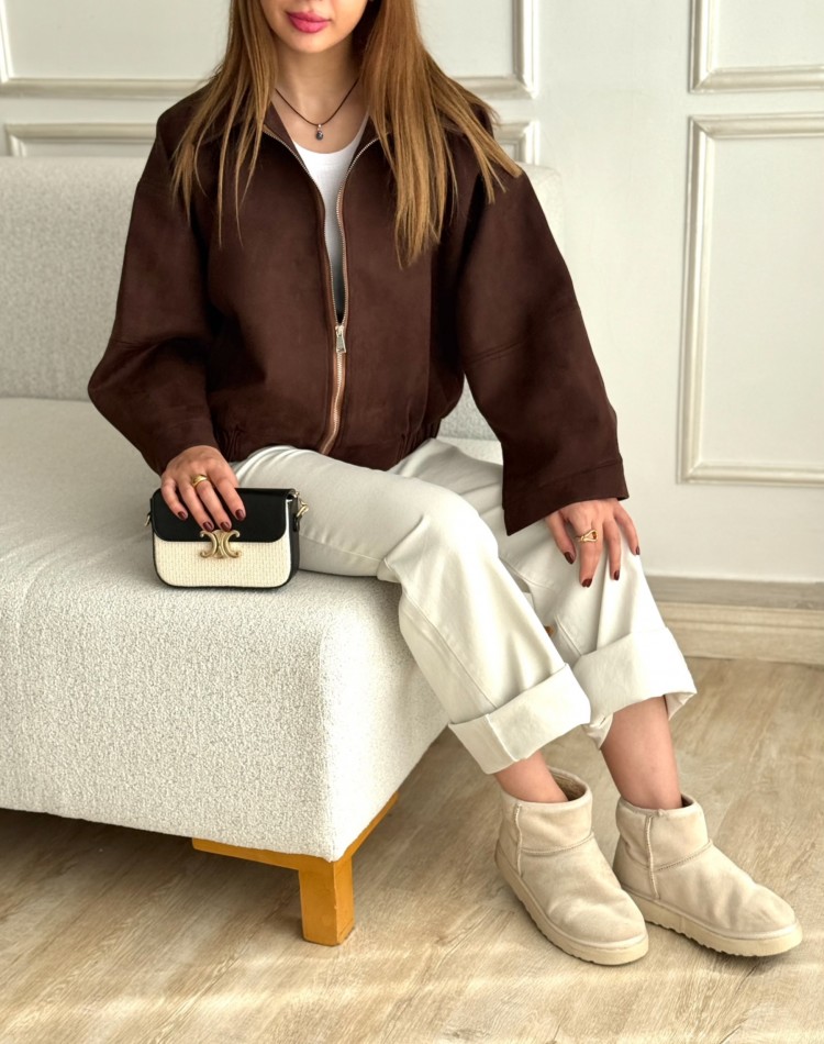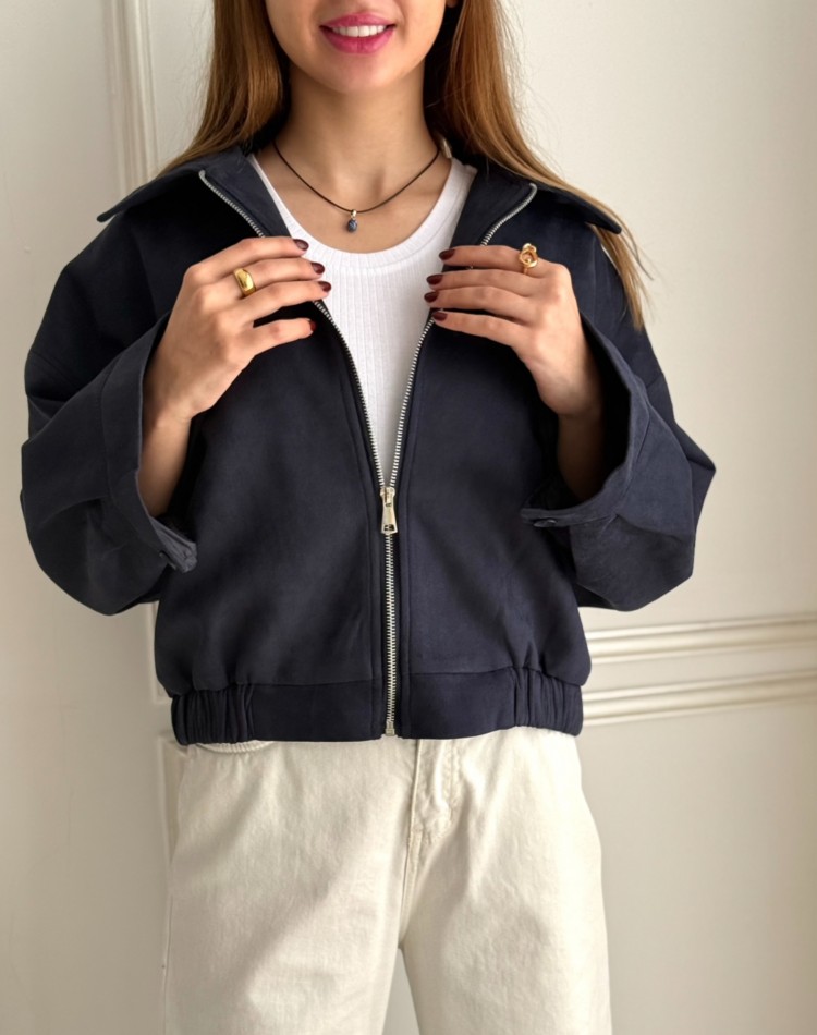 بامبر جکت پارچه جیر نرمال کد 1301388