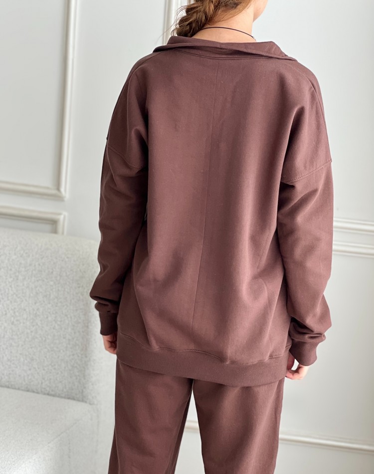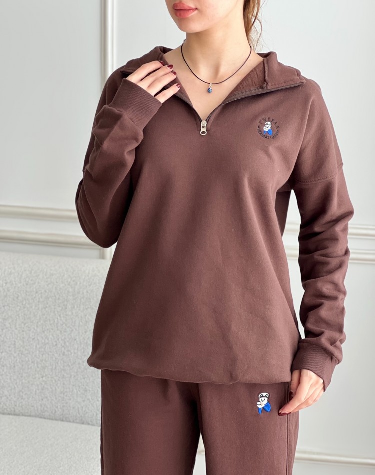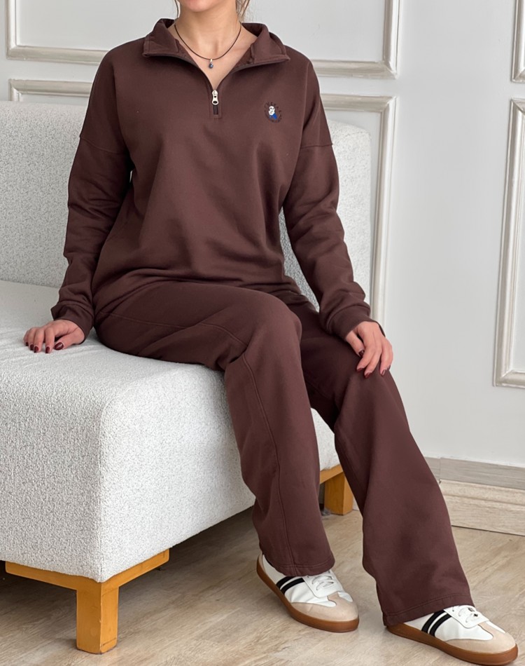 ست بلوز یقه ایستاده نیم زیپ با شلوار