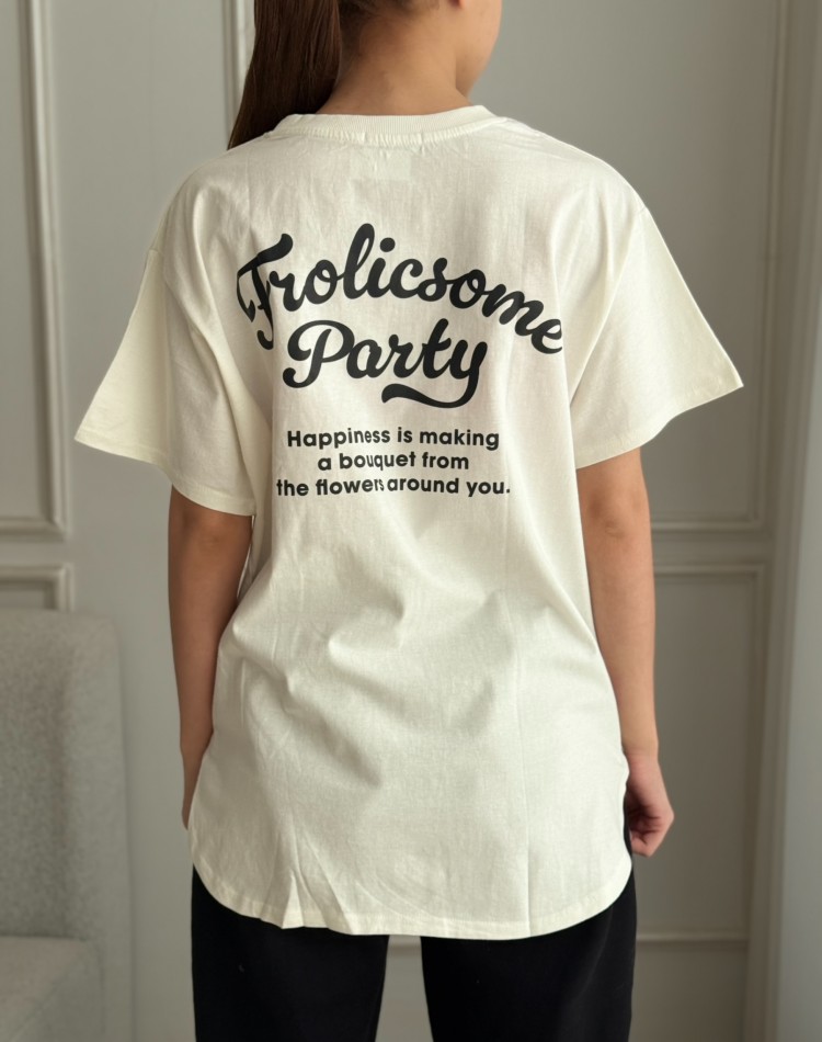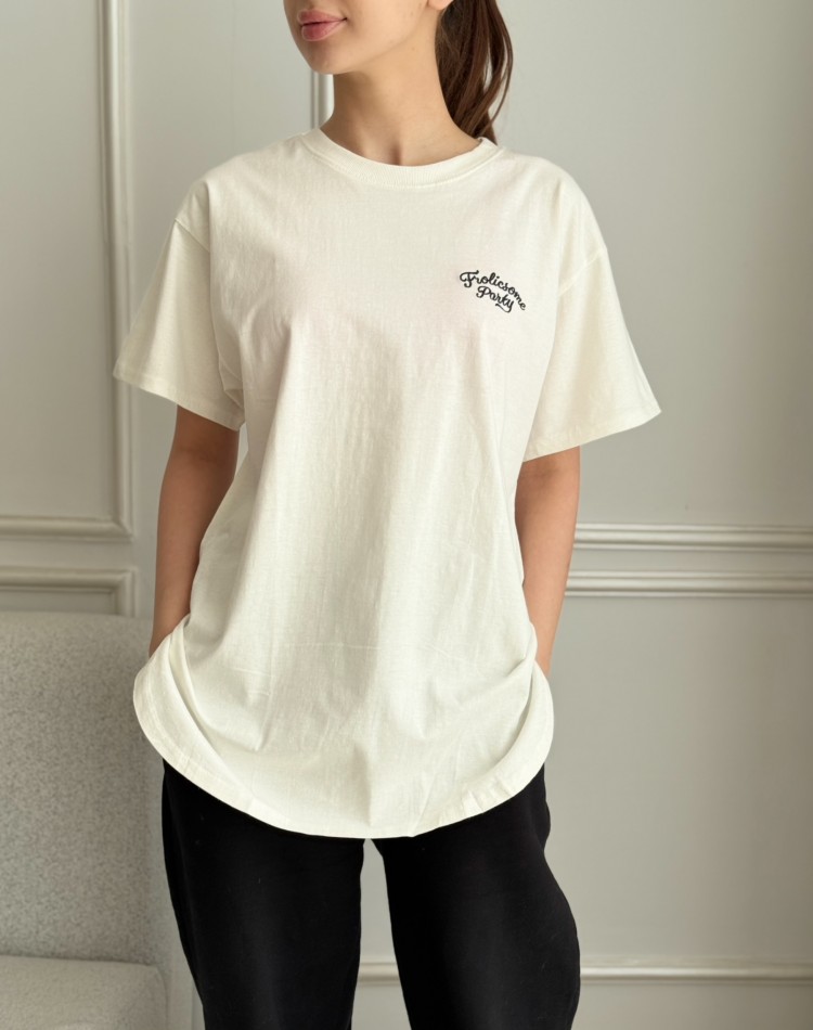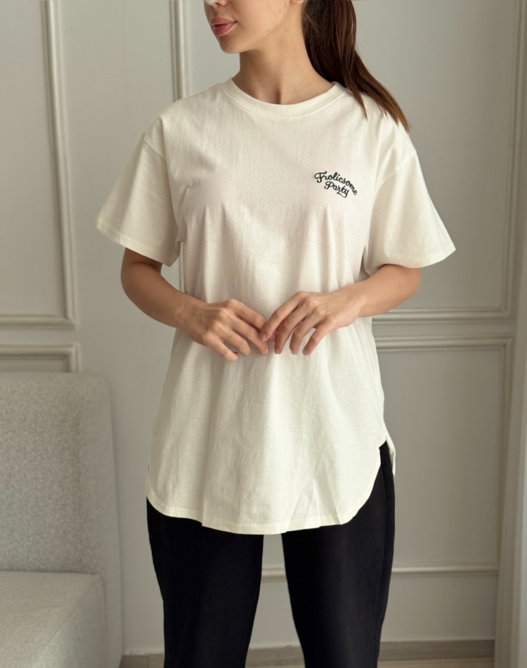 تیشرت سوپر نخی لانگ پشت چاپ سینه گلدوزی